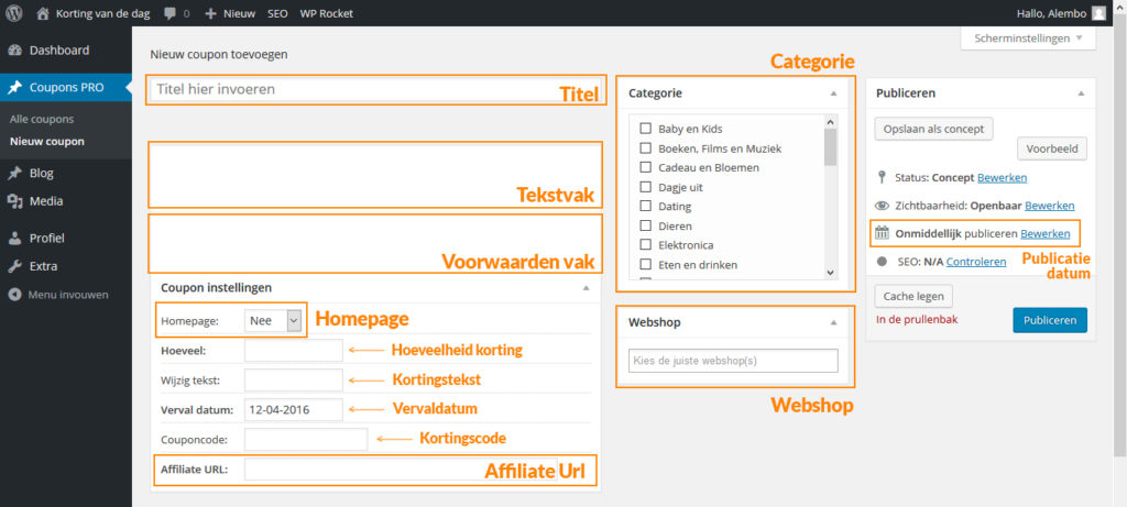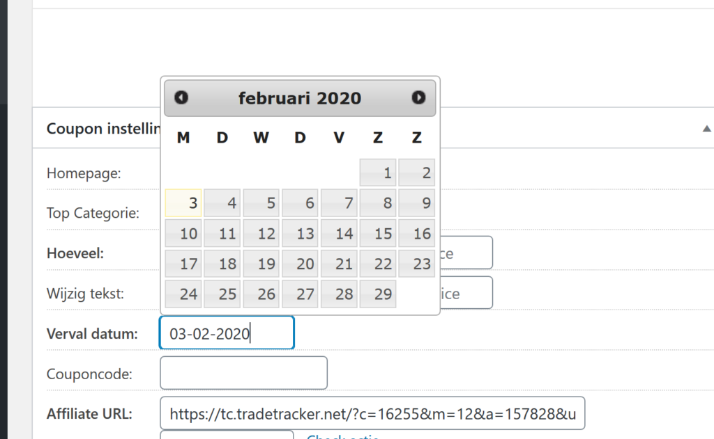 Important: if you want to link to the homepage of a webshop, you can leave the ‘Affiliate URL’ field empty. It will automatically (affiliate) link to the homepage.