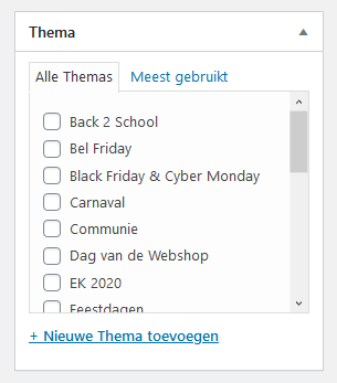 New: add the correct theme (for example Black Friday or Mother’s Day) if applicable