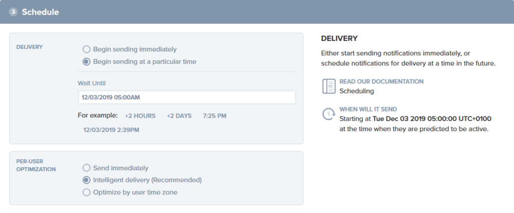 Choose ‘Intelligent delivery’ (this makes sure users receive the push when they are online)