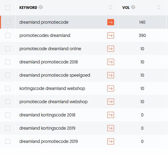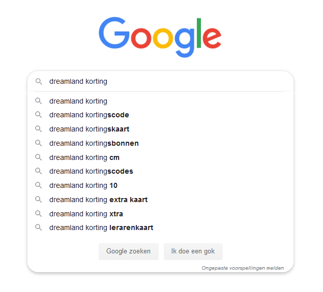 Make sure to check some other options. For instance: ‘Dreamland promotiecode’ also generates a lot of searches: