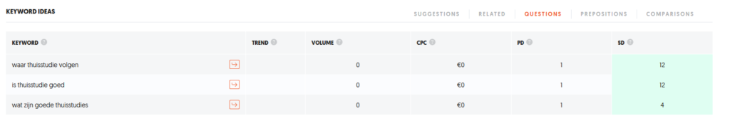 Look up a keyword via https://app.neilpatel.com/en/ubersuggest